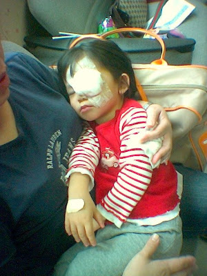Ashley was back to her old self again at night. We took out the eye patch at 9.00pm as per the instruction by the doctor. I was expecting some bruises around her eye but luckily there was none.