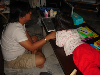 Hubby and I no longer work on our computer in the room because Ashley just would not let either of us stay inside the room. She would kept banging on the door and insisted that she wants to go in and create havoc. She keeps pulling the cables, banging on the keyboard, playing with the things inside the room. So, we have to put the laptop on the coffeetable in the living room.