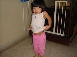 Yes, we went to visit Alycia, Sherilyn and their mommy. It was so much fun to play with these pretty cheh-chehs. They are so friendly and best of all, they have lots of toys. I also love to jump on Auntie Shireen’s trampoline. Hmm…maybe I should ask mommy to buy me one too 🙂 Mommy and Auntie Shireen tried to take a photo of the three of us but it was not easy. Here are two of the best shots.