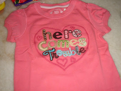 I don’t know why mommy was laughing when she read the words on the t-shirt. It says “Here Comes Trouble” and mommy said Trouble is my middle name. So, does that mean my name is Ashley Trouble Hor?