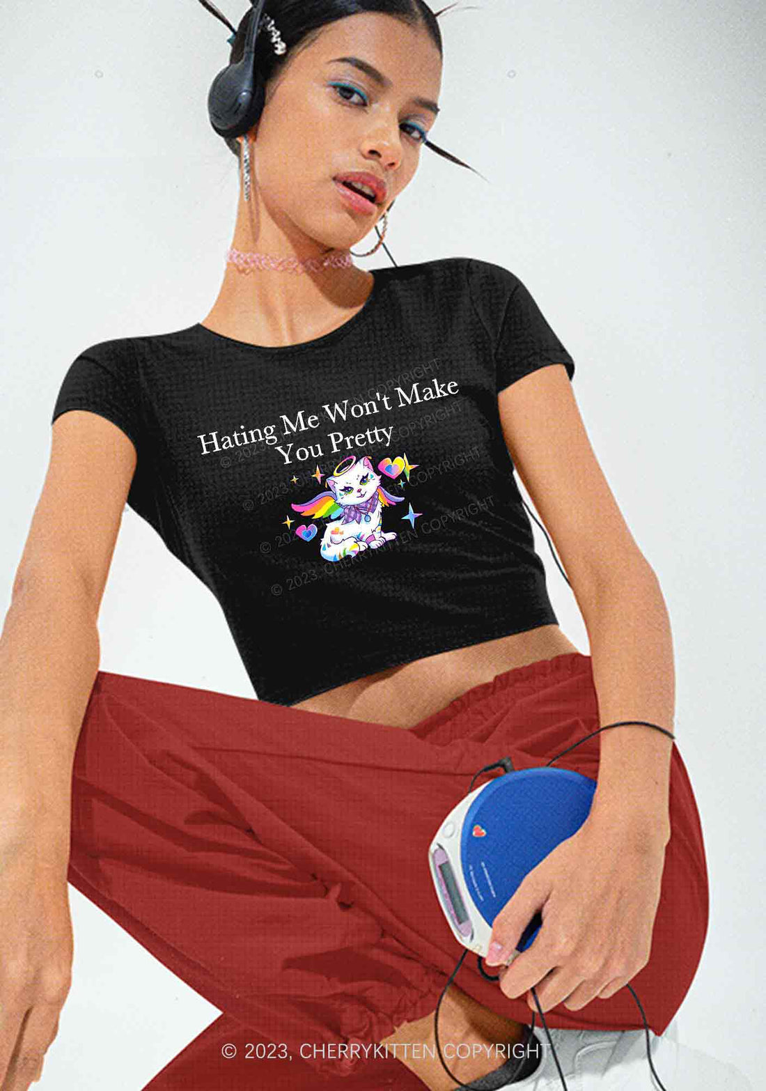 Baby tees are absolutely everywhere right now and they are the basic wardrobe foundations that work well with other clothing. If you want to jump on the Y2K aesthetic by pairing ours with cargo pants, scroll ahead for some of the favorite baby tees from Cherrykitten if you want to ace that look. Do not be afraid of showing off your inner ’90s girl, because these cute baby tees are not going anywhere this season.