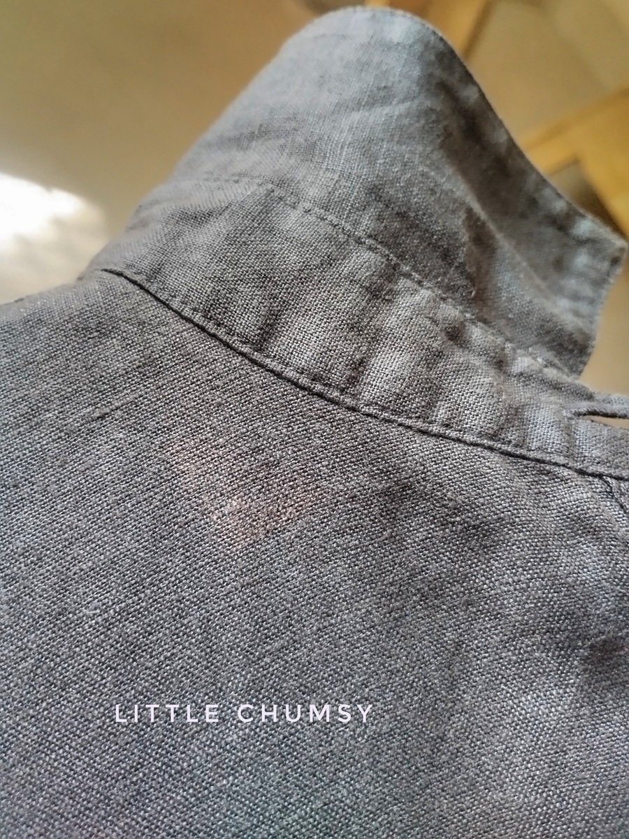 Occasionally, I find a gem and this time, it was a beautiful linen dress in charcoal shade. However, it’s not perfect. There’s a faint stain near the collar and it’s barely noticeable unless you’re inspecting it up close. I told the stall owner about it and she said she’ll give me a discount for the dress. She offered me RM15 for the dress. What a steal right? I quickly paid for it and brought it home.I tried soaking it in baking soda for a few hours but the stubborn stain just won’t budge.
