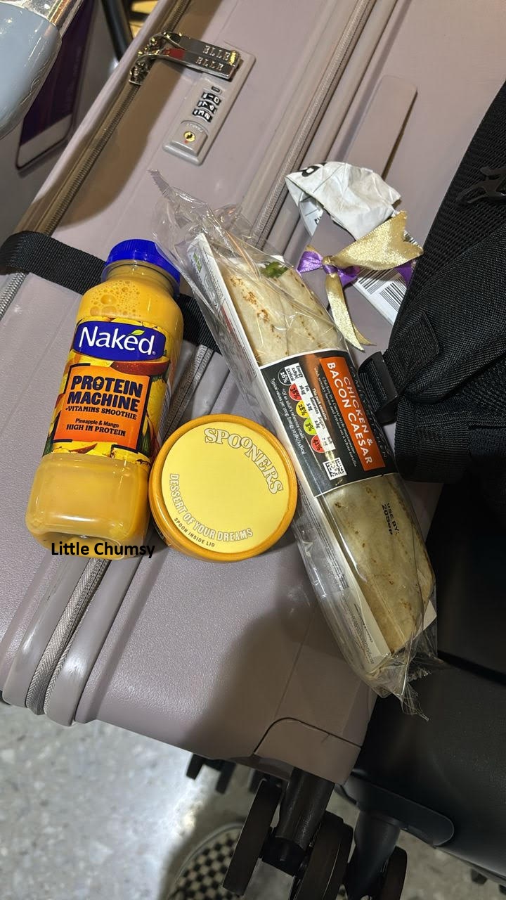 Her first purchase at Heathrow – £8 meal that consisted of a wrap, Spooners cookie dough and a bottle of juice.